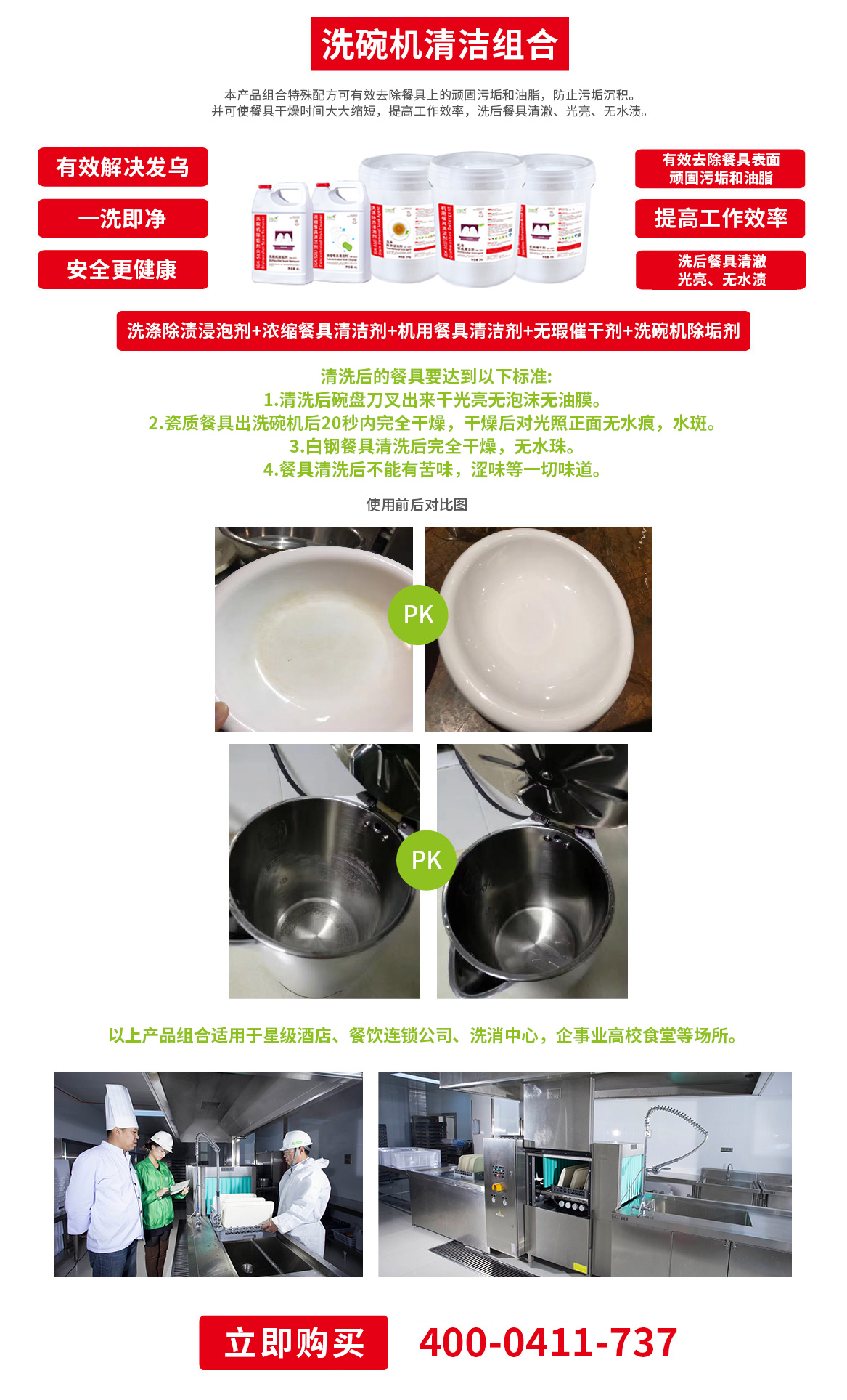 本產(chǎn)品組合特殊配方可有效去除餐具上的頑固污垢和油脂,防止污垢沉積。 并可使餐具干燥時間大大縮短,提高工作效率,洗后餐具清澈、光亮、無水漬。